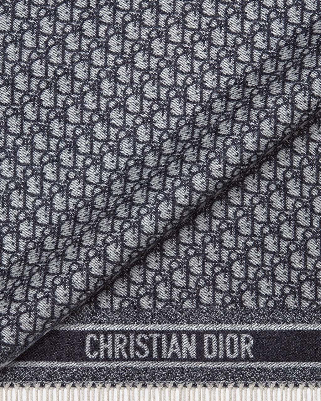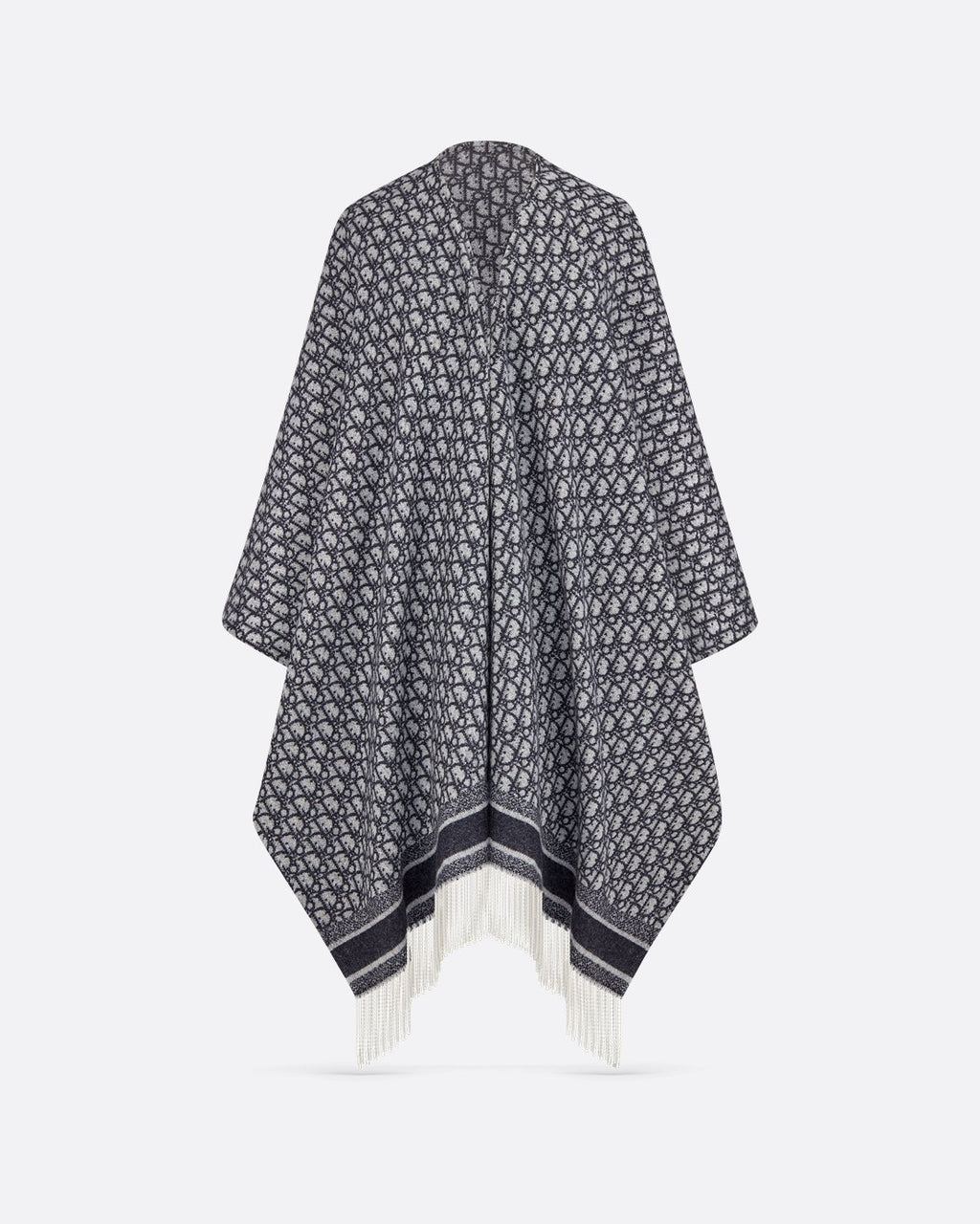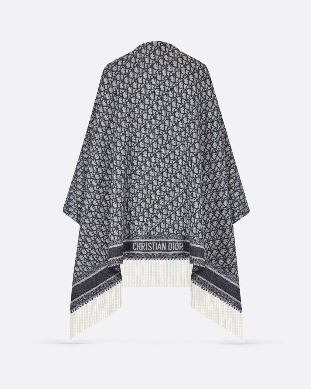 The Dior Oblique poncho showcases the House's iconic motif in a modern, timeless version. Crafted in navy blue cashmere, the design features fringed edges and tonal Christian Dior signature jacquard bands. Soft and lightweight, the poncho may be worn over the shoulders to lend the finishing touch to any modern look.