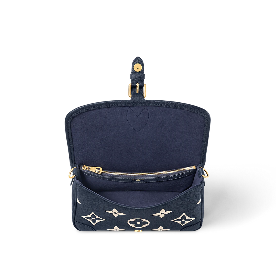 Part of the Nautical Collection, this Diane PM satchel bag is made from two-tone Monogram Empreinte leather and features a distinctive gold-color buckle. It has both a removable jacquard cross-body strap with “Louis Vuitton” woven into it, and a second shorter detachable strap for hand and short-shoulder carry.